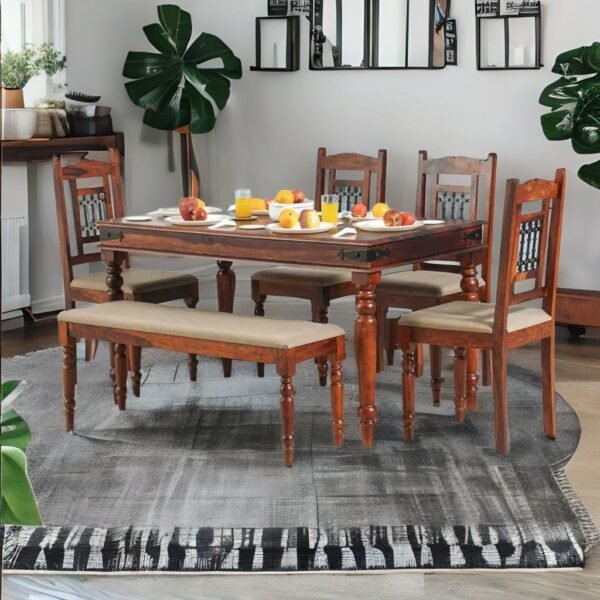 Traditional Beige Seating Dining Table Set With Bench